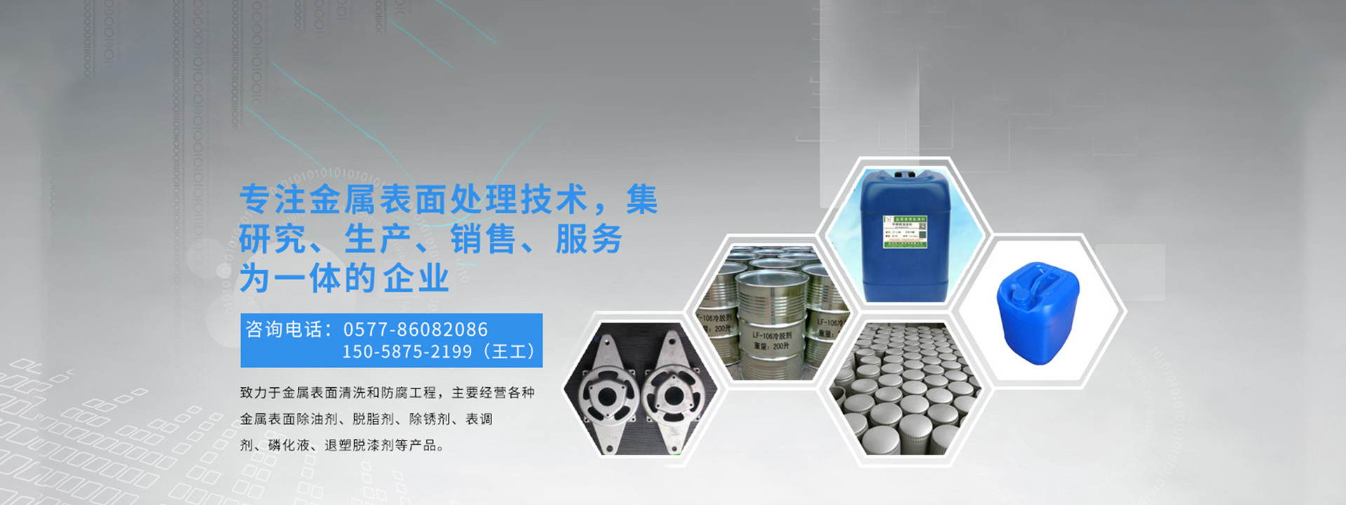 溫州龍飛環(huán)保科技有限公司致力于金屬表面清洗和防腐工程,主要經(jīng)營(yíng)各種金屬表面除油劑、脫脂劑、除銹劑、表調(diào)劑、磷化液、退塑脫漆劑、除蠟水、防銹水防銹油、封閉劑、鈍化劑、發(fā)黑劑、著色劑、化學(xué)拋光劑、合成乳化劑、水處理劑等金屬表面處理劑